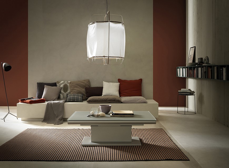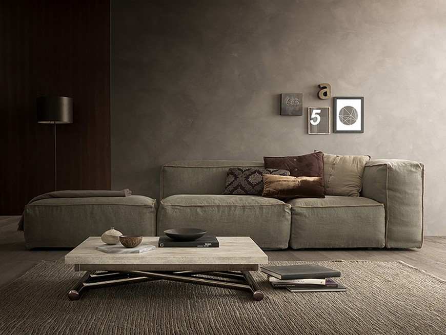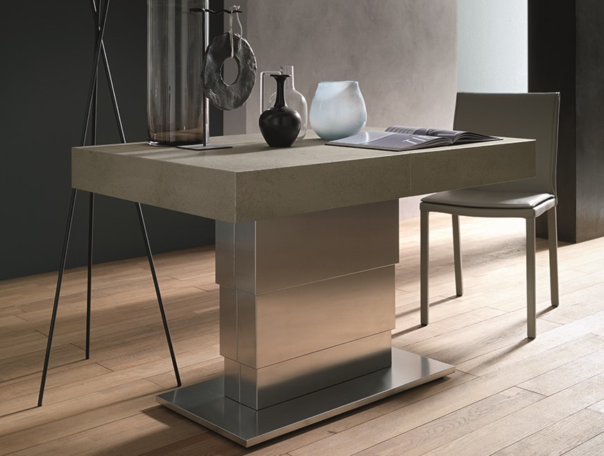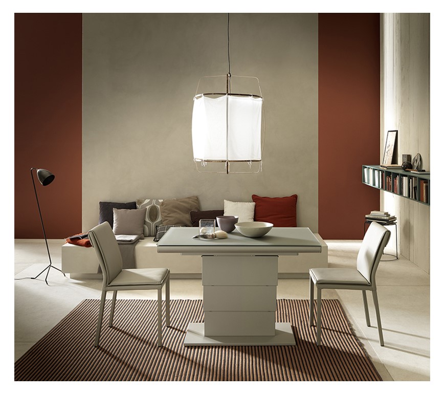 Tavolini trasformabili - Altacom - tavolo da pranzo - struttura centrale in acciaio - regolabile in altezza - laminato - legno - effetto malta - ceramica - Ares Glass 2 - tavolino salotto - tavolino pieghevole - tavolino da divano - tavolino allungabile - vicenza