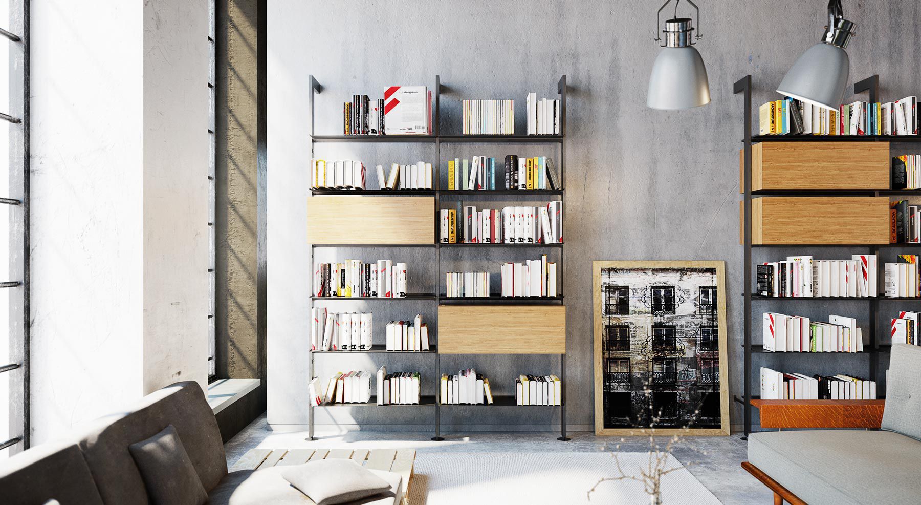Struttura in ferro e legno - Damiano Latini -Parete attrezzata - Vertical Line