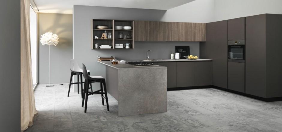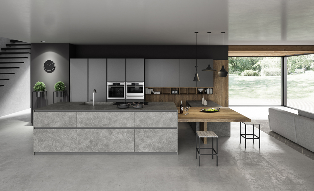 Cucine - cucine moderne - telaio alluminio - Gentili group - Time - vetro grigio opaco - laminam imperador grigio