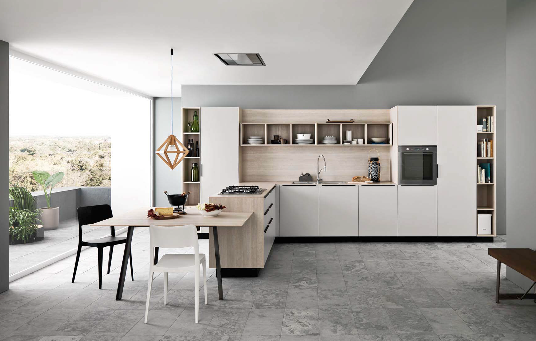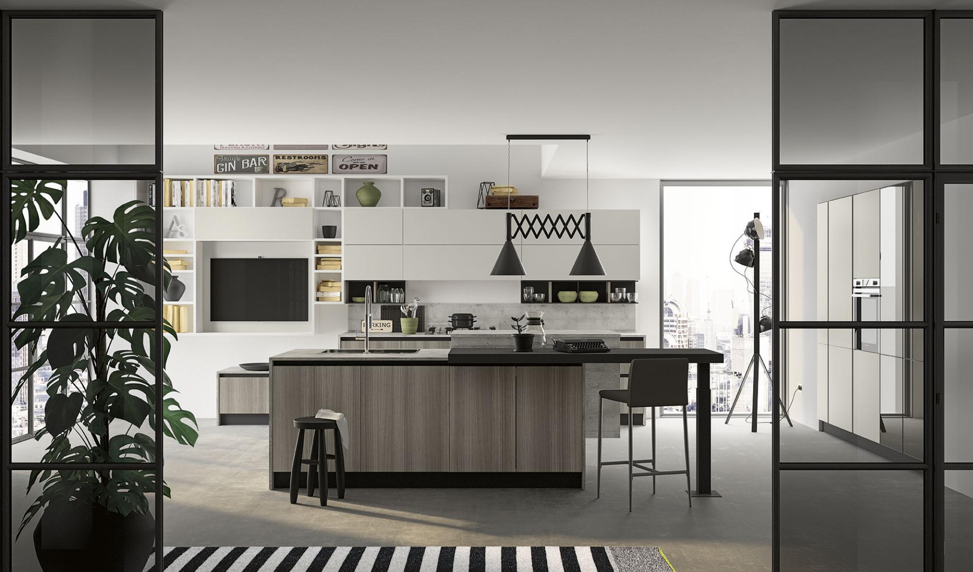 Cucine - Cucine moderne - cucina con maniglia - Gentili Group - Time maniglia - rovere termocotto - laccato bianco - gesso lucido - top pietra piasentina