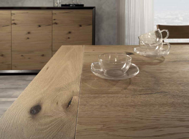Tavoli - Bontempi - Ingenia - Casa - tavoli fissi - allungabili - Big Bang - tavolo legno massello - gambe vetro - tavolo legno grezzo