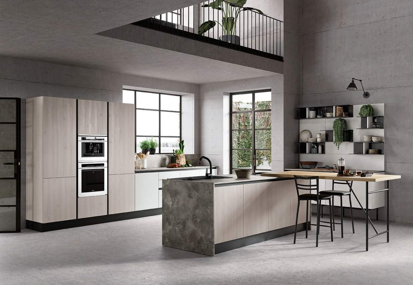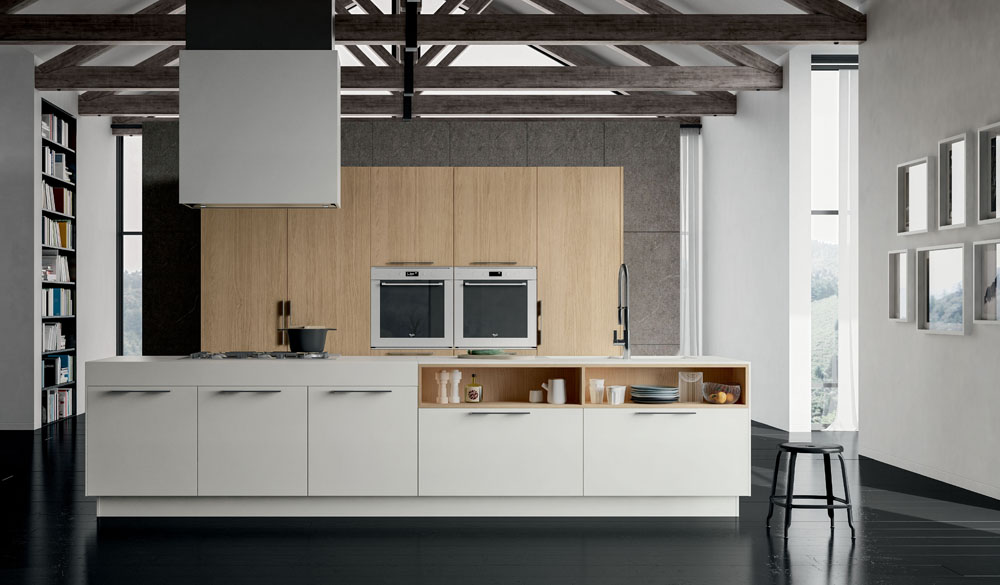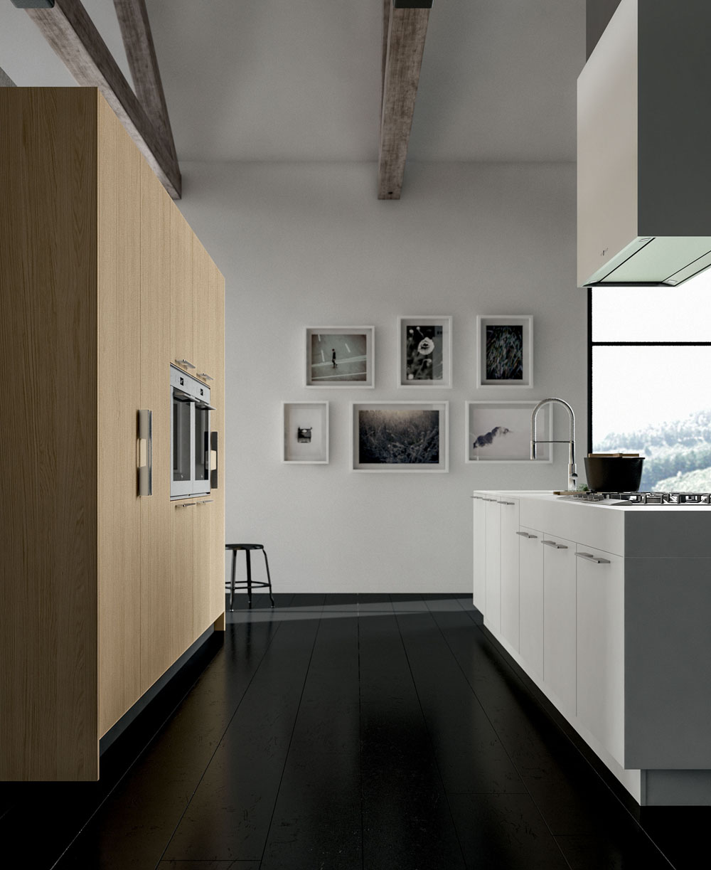 Cucine - Cucine moderne - cucina con maniglia - Gentili Group - Time maniglia - rovere naturale - laccato bianco - gesso opaco - top fenix